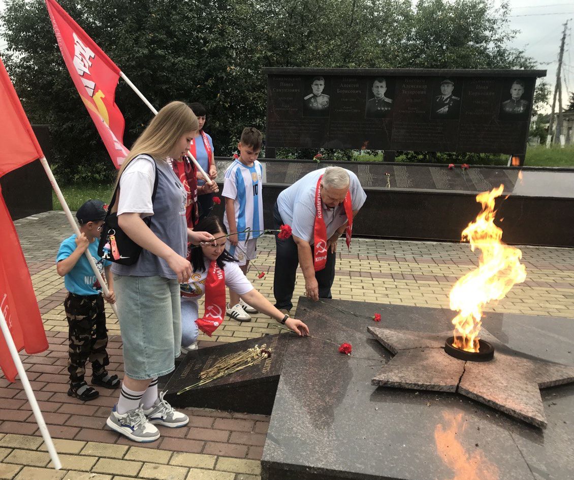 В завершение памятного мероприятия состоялось возложение цветов к подножию Мемориала. Коммунисты также посетили памятник герою Гражданской войны Николаю Щорсу и памятник подвигу солдата-артиллериста в городском парке – гаубицу С.П. Смолякова, который приобрёл её на свои личные сбережения и в качестве командира личного орудия прошёл во время Великой Отечественной войны с ней боевой путь от Курска до Берлина.