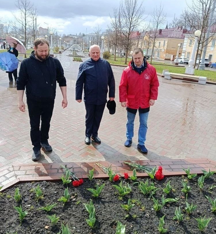 Затем, возложив цветы и к могиле безвременно ушедшего из жизни бывшего первого секретаря обкома КПРФ С.Н. Понасова и почтив его память минутой молчания, коммунисты отправились к прежнему месту захоронения И.И. Фокина – в сквер на Набережной, где землёй и плиткой скрыли любое упоминание о том, что здесь ещё несколько лет назад было надгробие первого председателя Брянского Совета – место исторической памяти. Туда коммунисты также возложили красные гвоздики.
