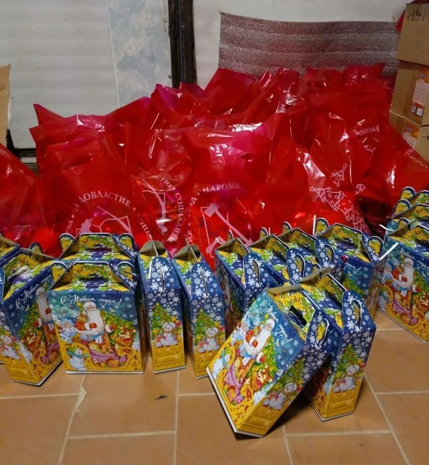 Подарки для детей прифронтовых районов области – это капелька радости и новогоднего настроения для измученного варварскими налётами села. Местные жители благодарят коммунистов за устроенный для детей праздник.