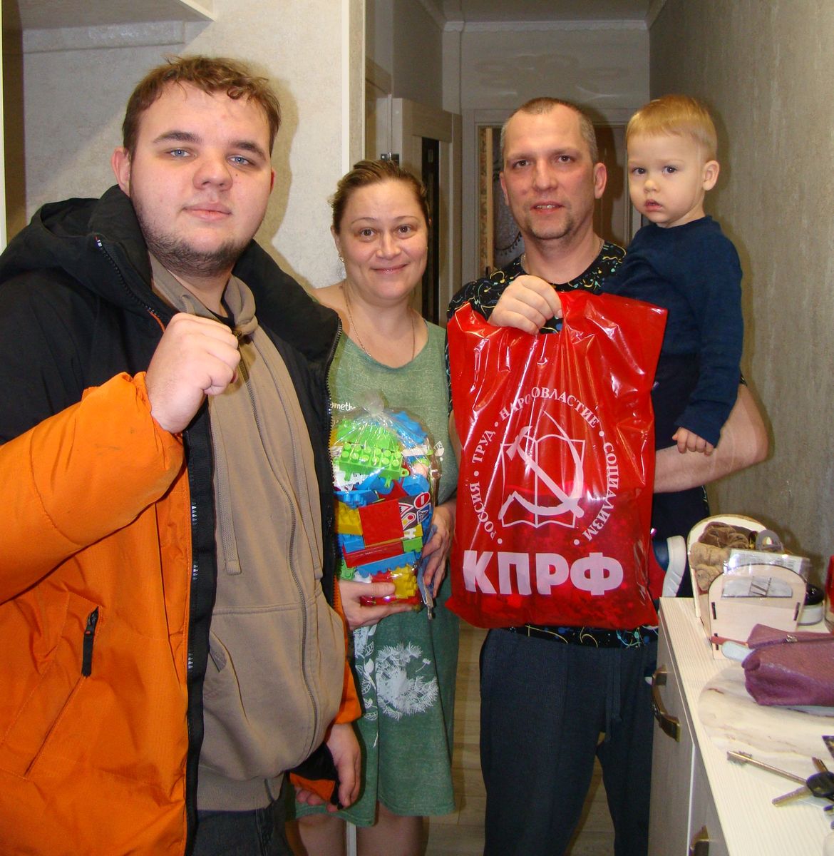 «Спасибо большое вам и вашей партии за подарок, подарок очень хороший, ребёнок рад»,