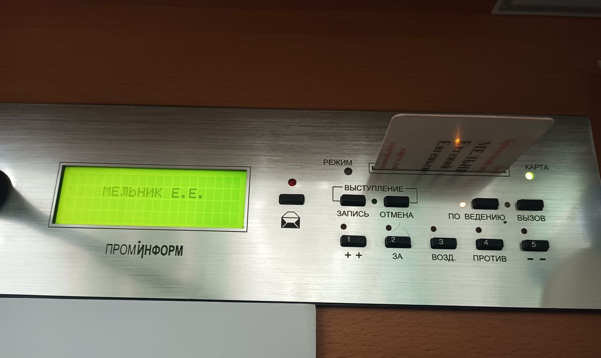 Так как такое происходит уже не первый раз, чтобы не быть голословным, специально сфотографировал пульт для голосования, на котором видно, что горит светодиод кнопки «по ведению». По окончании заседания по этому поводу публично высказал свой протест заместителю председателя облдумы Николаю Якушенко.