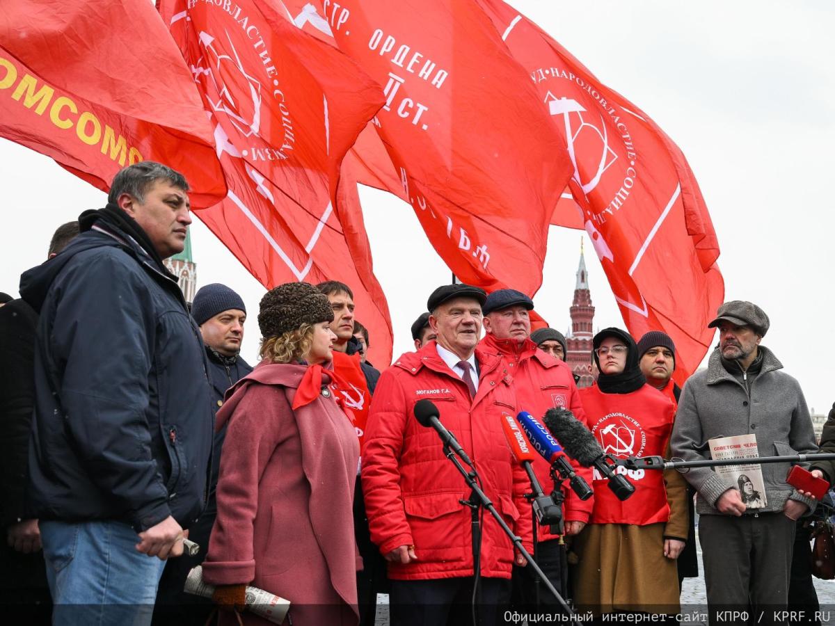 По окончании памятных мероприятий Председатель ЦК КПРФ Г.А. Зюганов обратился к журналистам, проведя историческую параллель между великими свершениями прошлого и суровыми вызовами современности.