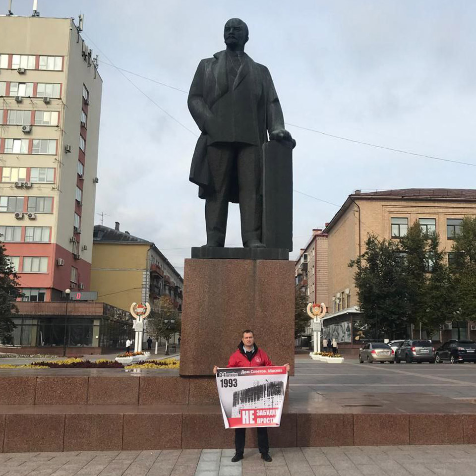 В 32-ю годовщину событий октября 1993 года активисты КПРФ вышли на центральные улицы Брянска в память о защитниках Дома Советов.