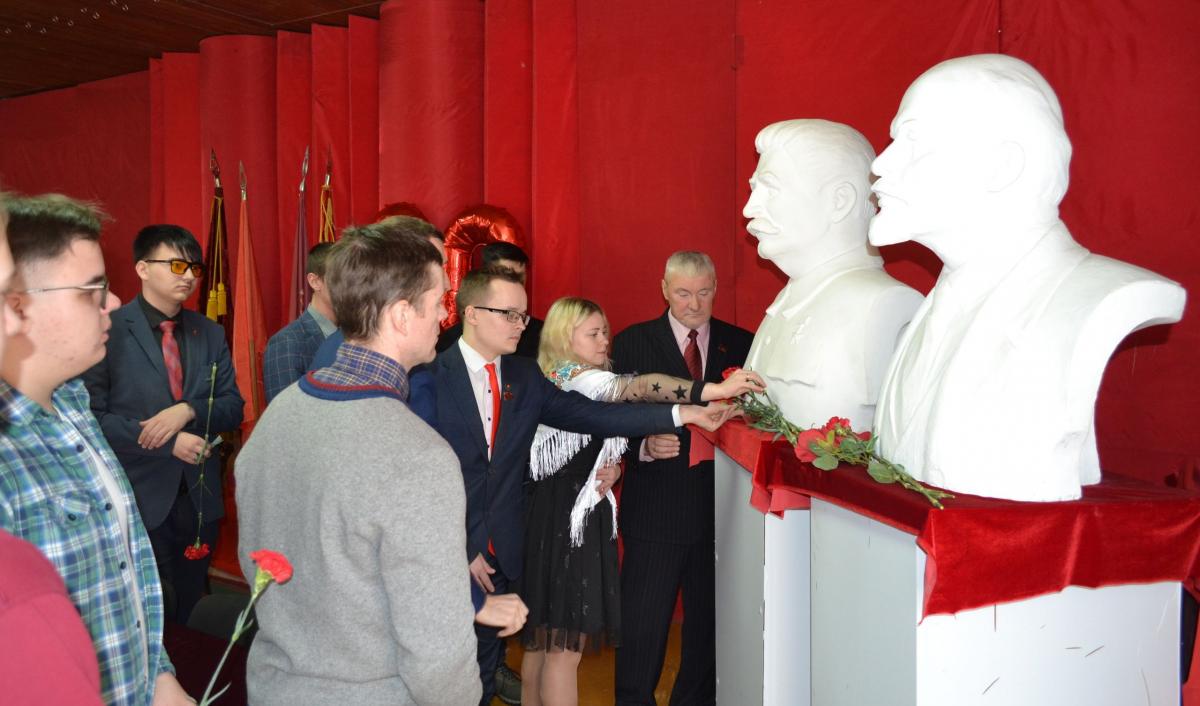 Брянск. Коммунисты возложили красные гвоздики к бюсту вождя, установленному на пожертвования народа в областном комитете КПРФ.