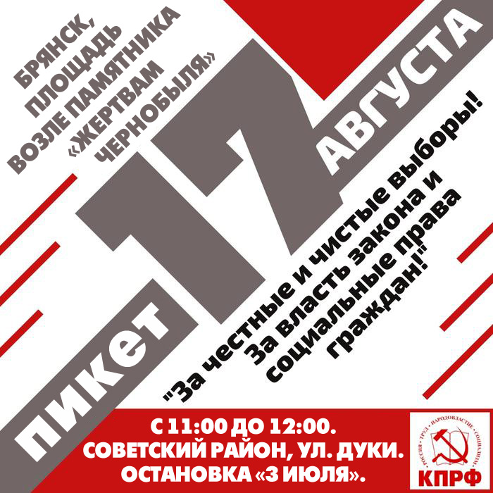 Брянск. «За честные и чистые выборы». 17.08.19 в 11:00. Пам. «Жертвам Чернобыля»