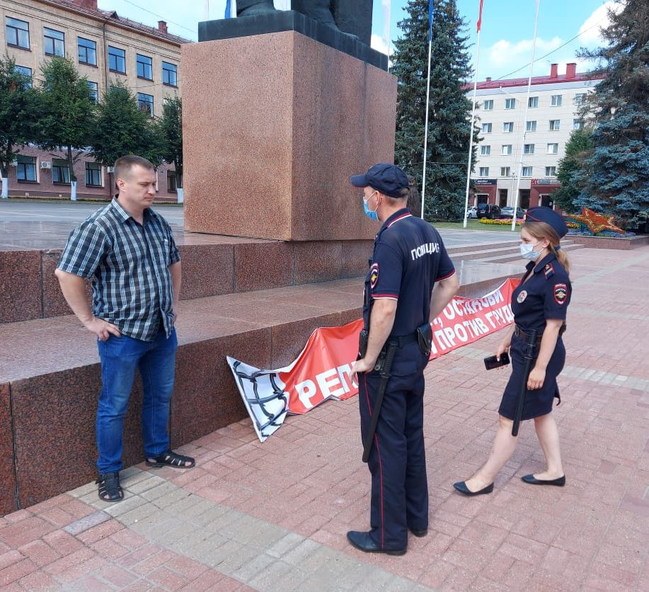 В субботу, 31 июля, одиночный пикет на площади В.И. Ленина в Брянске провёл первый секретарь Брянского обкома КПРФ, руководитель фракции КПРФ в Брянской областной думе и кандидат в депутаты Государственной думы Андрей Архицкий.
