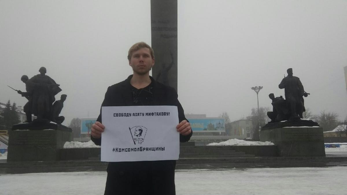 На центральных площадях Брянска прошли пикеты комсомольцев против усиления политических репрессий. Эта общероссийская акция была инициирована ЦК ЛКСМ РФ, который выступил с соответствующим заявлением по делу Азата Мифтахова.