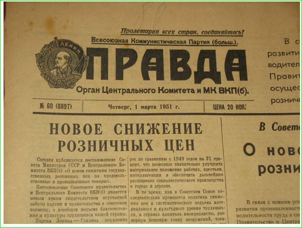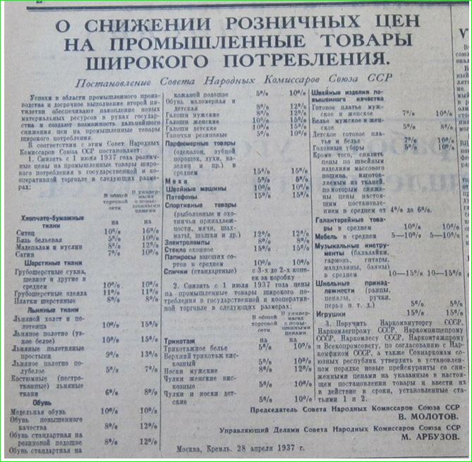 Обратите внимание: послевоенное сталинское снижение цен на продукты и промышленные товары проводилось 16 декабря 1947 г., 10 апреля 1948 г., 1 марта 1949 г., 1 марта 1950 г., 1 марта 1951 г., 1 апреля 1952 г., 1 апреля 1953 г. и 1 апреля 1954 г.