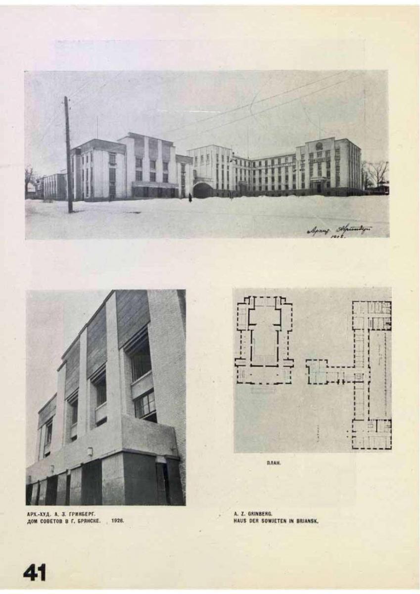 “Приносим свои искренние поздравления ко дню открытия первого в Союзе Дома Советов и почти единственного примера высокого архитектурно-художественного оформления...” – гласила поздравительная телеграмма архитектурной секции «Всерабис» Брянскому губисполкому в честь завершения строительства в городе Дома Советов.