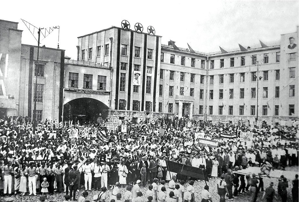 Первомай у Дома Советов. 1930-е гг. Фото от М.Федотова.
