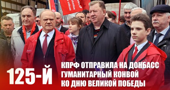 27 апреля 2024 года из подмосковного совхоза им. Ленина ушёл 125-й гуманитарный конвой от КПРФ на Донбасс. Пройдя большой и трудный путь в зону боевых сражений к точке назначения, автопоезд должен прибыть накануне 9 мая – Дня Великой Победы, священного дня для каждого из нас. Особое предназначение этого конвоя в том, что он посвящён 79-й годовщине Великой Победы советского народа над фашистской Германией и адресован бойцам специальной военно-политической операции России.