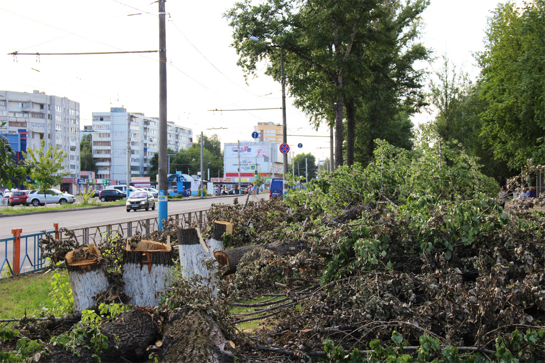 Но, несмотря на все возражения и протесты жителей города, федеральные денежки нужно освоить в этом году, и Советская районная администрация дала «добро» на валку тополей, депутаты-единороссы не возражали, и комитет ЖКХ городской администрации заключил муниципальный контракт с АО «Брянскавтодор». И работа закипела. Под шумок коммунальщики начали пилить всё подряд: и старые, но здоровые тополя, растущие по одну сторону газона, и молодые, 5-7-летние берёзки, клёны и липы, высаженные жильцами многоэтажек по другую сторона газона, которые должны были оказаться вдоль будущей расширенной полосы. Но теперь уже, увы, не окажутся. В ответ на возмущения жильцов, кинувшихся спасать «свои» деревья, дорожники выстроились в цепь: «Вас деревом зашибёт, а нам вас потом хорони!» Ведь на их стороне был сам глава администрации Брянска Александр Макаров, давший указание «добиться минимальных неудобств для жителей в процессе работ» и пообещавшим, что «контроль за работой будет тщательным и многоступенчатым, в том числе и со стороны общественности».