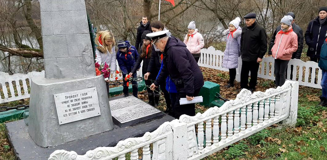 На месте гибели отряда комсомолец Дмитрий Дашунин прочитал стихотворение, посвящённое партизанам.
