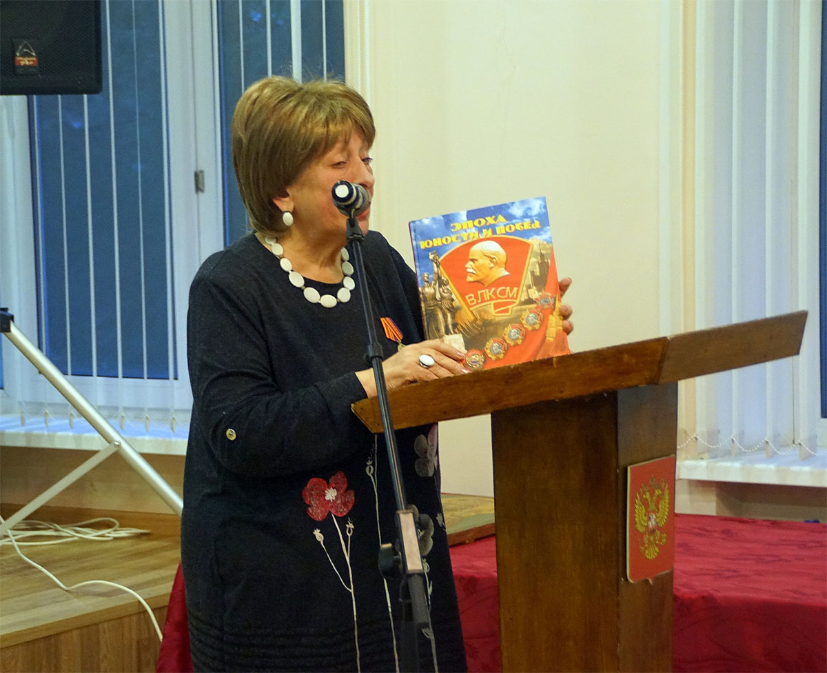 Председатель районного совета ветеранов войны и труда, организатор праздничного мероприятия Р.С. Гарбузова подробно рассказала биографию Карачевского комсомола. О том, как в первые дни Великой Отечественной войны около 10 тысяч комсомольцев-земляков добровольцами ушли на фронт, о комсомольцах Героях Советского Союза – уроженцах карачевской земли.