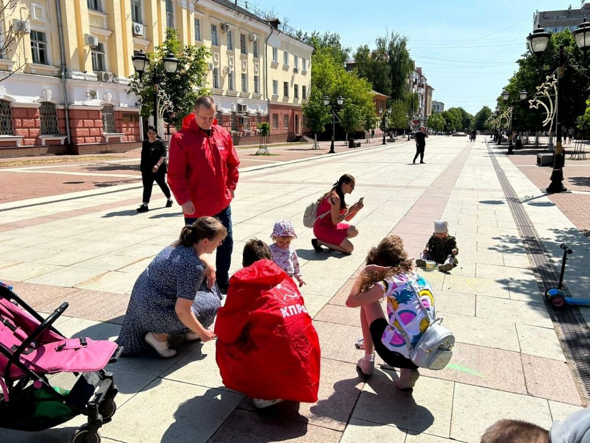 БРЯНСК. Комсомольцы Брянщины во главе с первым секретарём Алексеем Агаповым и коммунисты Советского МО КПРФ г. Брянска во главе с первым секретарём Игорем Фирсовым вновь порадовали брянскую ребятню. Ежегодная акция-конкурс «Рисуем детство на асфальте» по традиции привлекла большое внимание отдыхающих родителей с детьми.