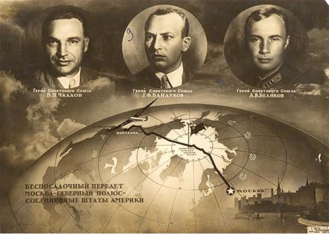 В ряду замечательных достижений советского человека – и событие, произошедшее 80 лет назад. 18-19 июня 1937 г. советские лётчики В.П. Чкалов, Г.Ф. Байдуков и А.В. Беляков впервые в истории совершили беспосадочный перелёт по маршруту Москва-Северный полюс-Северная Америка.