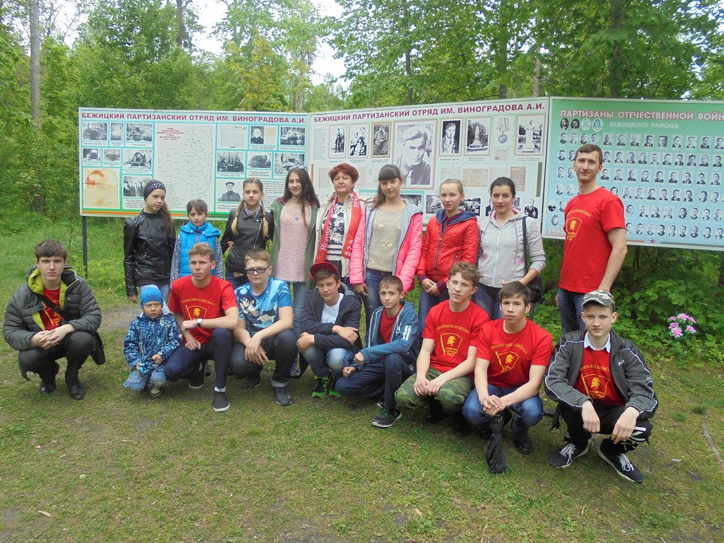 Затем ребята отправились на стоянку партизанского отряда имени А.И. Виноградова. Здесь, у Круглого озера, в годы Великой Отечественной войны базировался Бежицкий партизанский отряд. В октябре сорок первого партизаны под командованием начальника ремонтно-механического цеха завода «Красный Профинтерн» Александра Ивановича Виноградова развернули борьбу против гитлеровских оккупантов. Ни днём, ни ночью народные мстители не давали покоя врагу. Более ста диверсий было совершено на железных дорогах Брянск-Москва, Орел-Смоленск. Множество раз гремели взрывы на грунтовой дороге Бежица-Любохна-Жиздра… За два года отрядом было подорвано 110 вражеских эшелонов с боевой техникой и живой силой врага, взорвано 11 мостов, 5 складов, уничтожено почти 300 автомашин, бронемашин и танков, несколько самолётов. Тысячи вражеских солдат и офицеров погибли от рук партизан. Несли потери и народные мстители. Погиб 26 июля 1942 года и командир отряда А.И. Виноградов. Отряду было присвоено его имя.