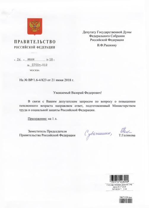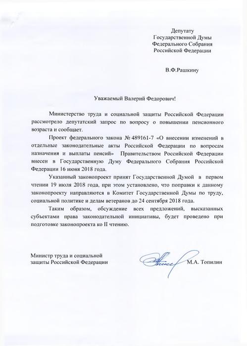 В конце июня депутат Государственной Думы В.Ф. Рашкин направил в адрес премьер-министра Дмитрия Медведева депутатский запрос, в котором призвал премьер-министра отозвать антинародный законопроект или создать условия для объективного обсуждения его необходимости общественностью.