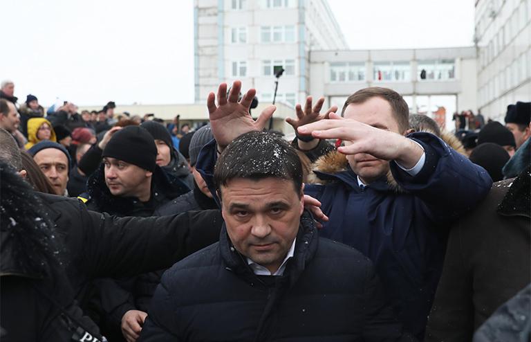 Именно массовое отравление детей и взорвало ситуацию и заставило власти прореагировать. Какими только словами не «приветствовали» прибывших к больнице губернатора Воробьёва и главу Волоколамского района Гаврилова граждане. Обзывали фашистами, грозили самосудом. А когда уже раздавший обещания пока сократить в два раза подвоз мусора, а в ближайшей перспективе приступить к «рекультивации старой карты полигона» губернатор Воробьев уезжал, сотни человек скандировали: «В отставку!»