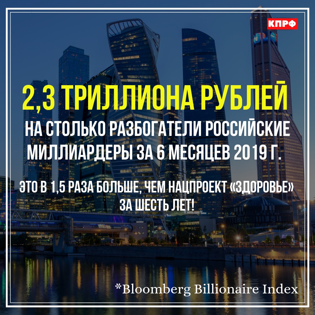 За шесть месяцев 2019 г. российские миллиардеры разбогатели на 2,3 триллиона рублей