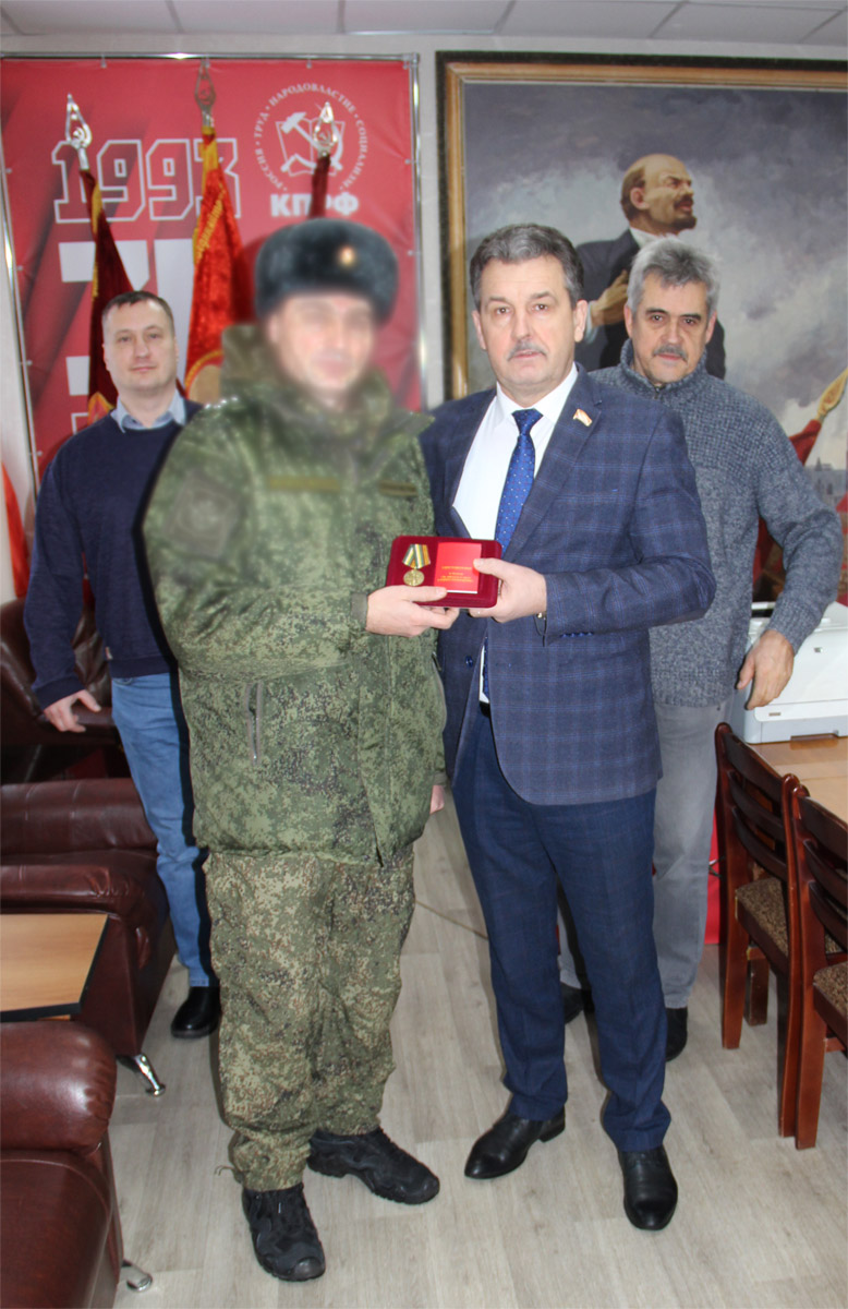 По мнению Андрея Георгиевича, это медаль – не только его личная награда, но и заслуга всех коммунистов Брянского областного комитета КПРФ и их сторонников, тех, кто сегодня своим трудом приближает долгожданную победу в спецоперации – собирает и отправляет нашим защитникам гуманитарную помощь – продукты питания, лекарства, тёплую одежду и обувь, инструменты, строительные материалы и всё то, что требуется сегодня нашим бойцам в зоне СВО, тех женщин-волонтёров, кто вяжет маскировочные сети, изготавливает окопные свечи, вяжет тёплые носки и рукавицы для ребят – крайне необходимые на фронте вещи и шьёт постельное бельё для госпиталей.